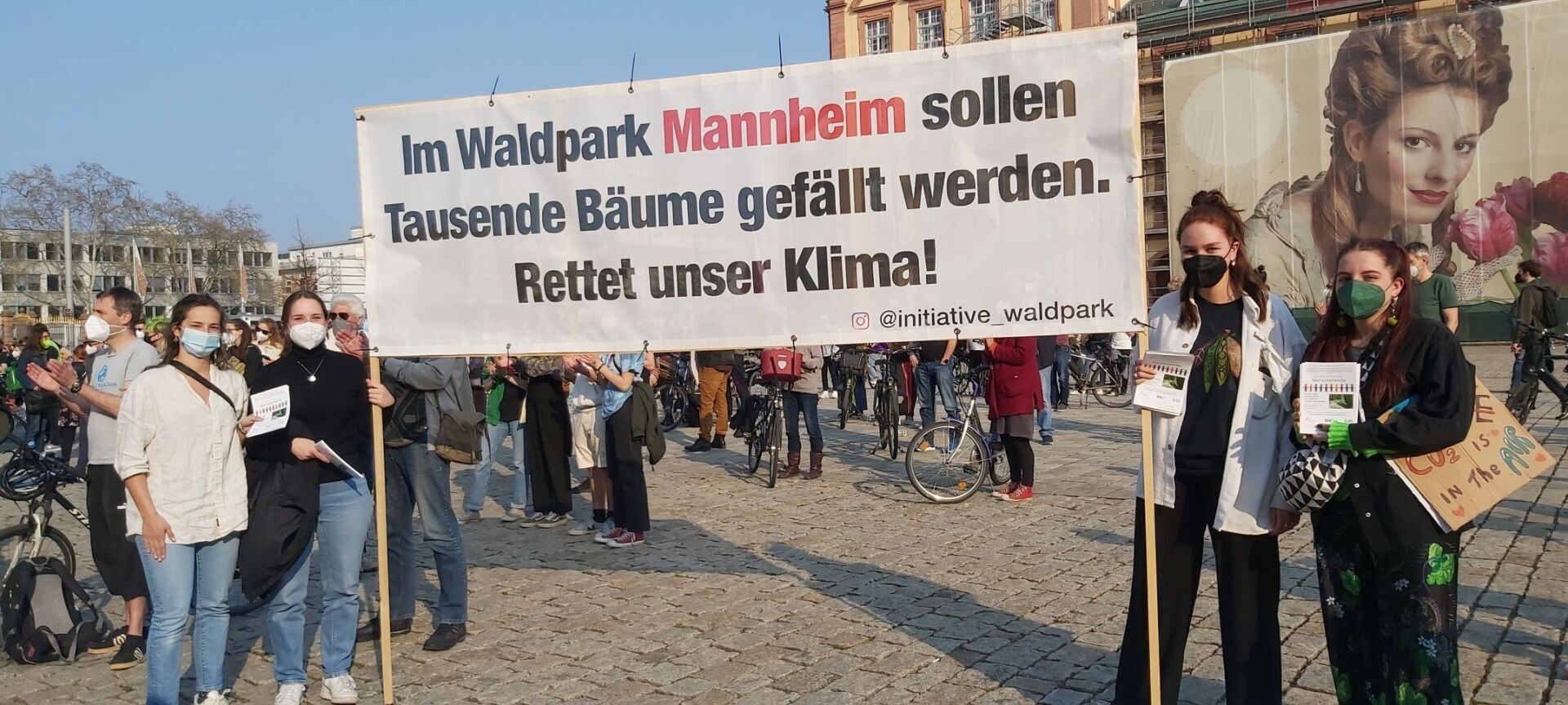 Unsere druckfrischen Flyer fanden viele Interessenten beim Klimastreik von Fridays for Future am 25. März. Zusammen mit vielen jungen Unterstützern haben wir auf der Demo gegen die geplanten, völlig sinnlosen Abholzungen im Waldpark protestiert. Mit unserem Banner waren wir nicht zu übersehen. Unsere Botschaft an die Verantwortlichen bei der Stadt Mannheim: Wer ambitionierte Klimaschutzziele formuliert, muss auch etwas dafür tun! Anstatt eine Grünfläche nach der anderen zu vernichten und kostbare Bäume abzuholzen – und das in unserer heißen Stadt mit ihrer verheerenden Klimaprognose.