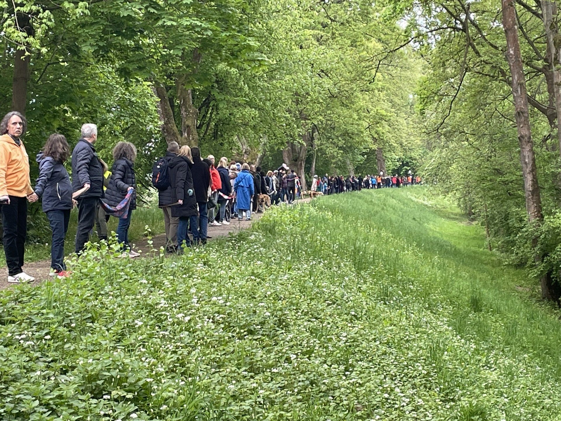 Mit einer Menschenkette und einer Mahnwache haben am Sonntag, 24. April, rund 2.000 Menschen auf dem Rheindamm in Mannheim friedlich gegen die Abholzung Tausender Bäume und für einen sicheren Hochwasserschutz demonstriert. Sie protestierten damit gegen die Sanierungspläne des Regierungspräsidiums Karlsruhe.